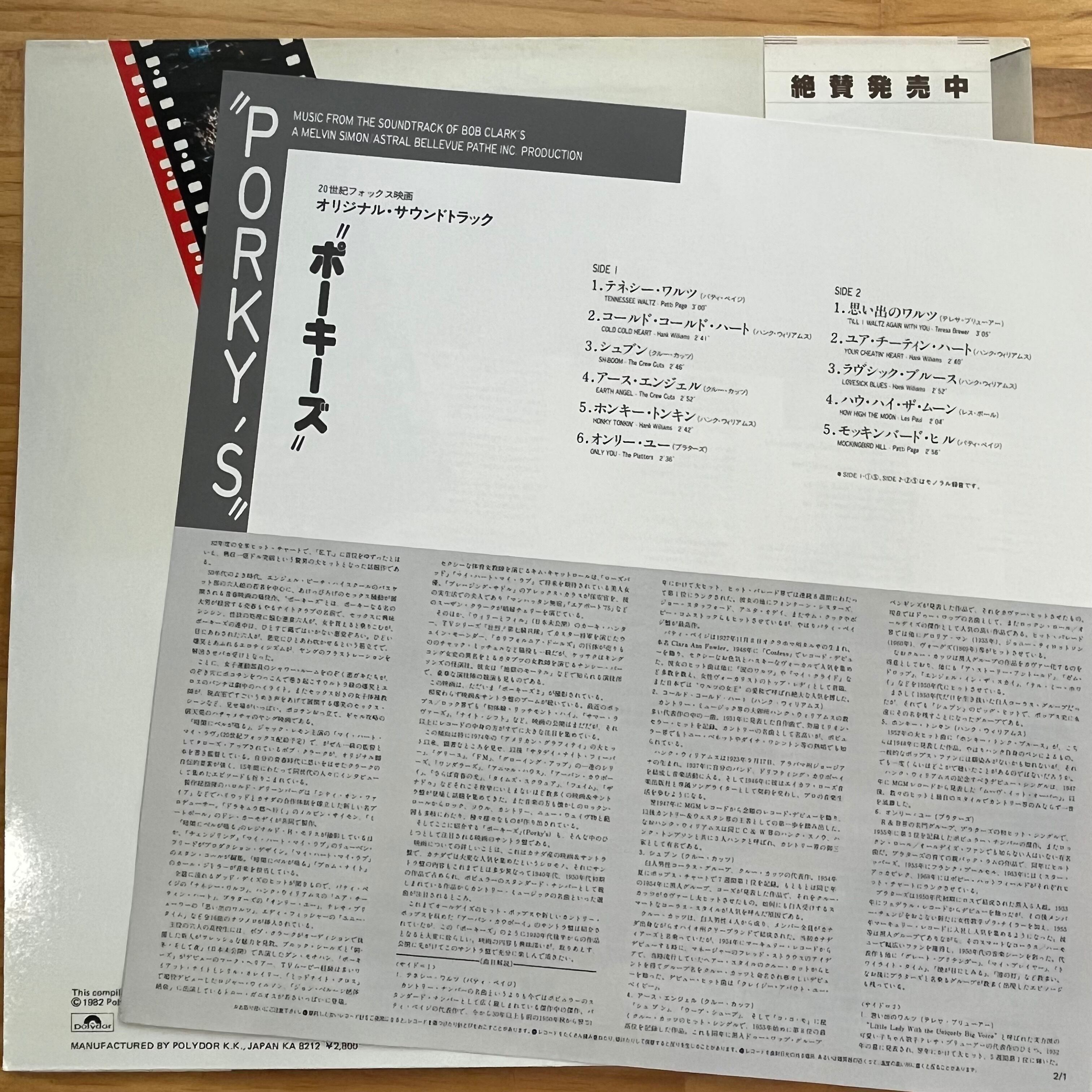 ■ タイトル: THE ORIGINAL MOTION PICTURE SOUNDTRACK PORKY’S