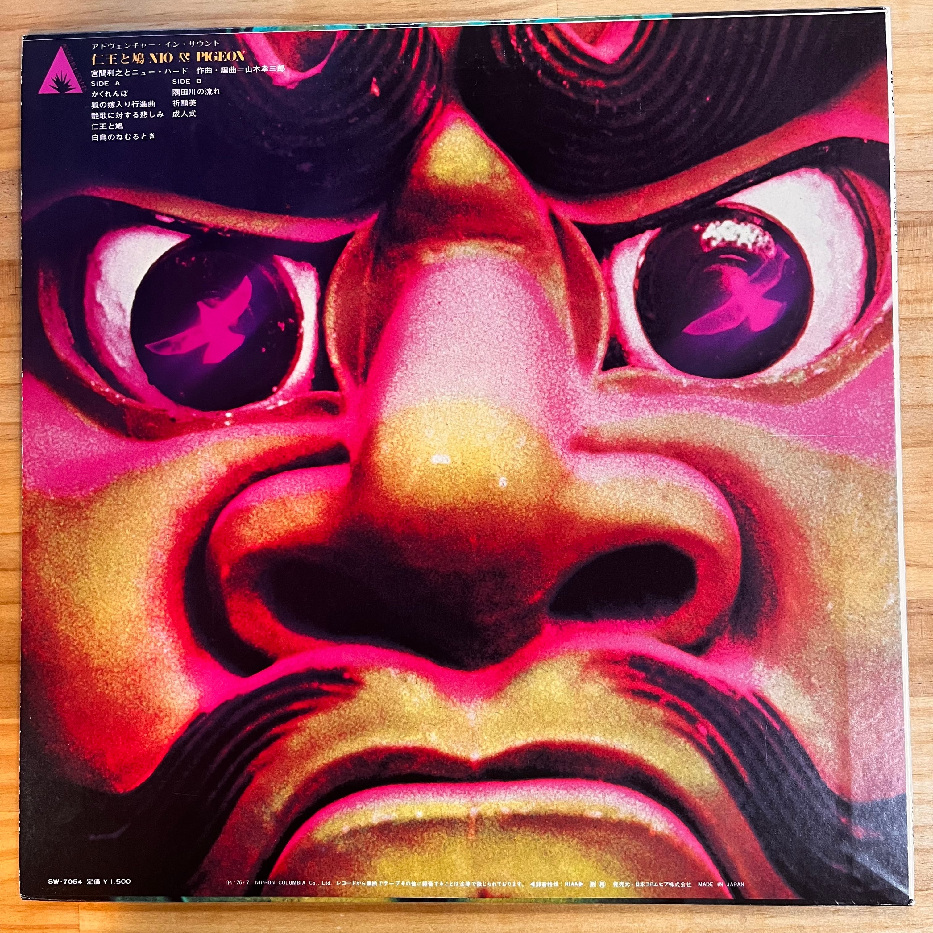 日本を代表するビッグ・バンドのひとつである、宮間利之率いるニューハード。1969年発表の『パースペクティヴ』以降、先鋭的なサウンドでビッグ・バンド・ジャズの新たな地平を切り拓いてきた。本作『仁王と鳩』は、1972年リリースのニューハードを代表する作品のひとつ。全編で山木幸三郎が作・編曲を担当し、かねてからのテーマのひとつである“日本”を深く追求した。緻密で重層的なアレンジと演奏で表現する日本の風物、伝統、情景。重厚でダイナミックななかに幽玄とも言える日本的情緒のある旋律が響く。強靭なグルーヴが先導する「成人式」を筆頭に、深い味わいと大いなる刺激に満ちた曲が並ぶ。これぞ、ニューハードの真骨頂にして最高潮である。